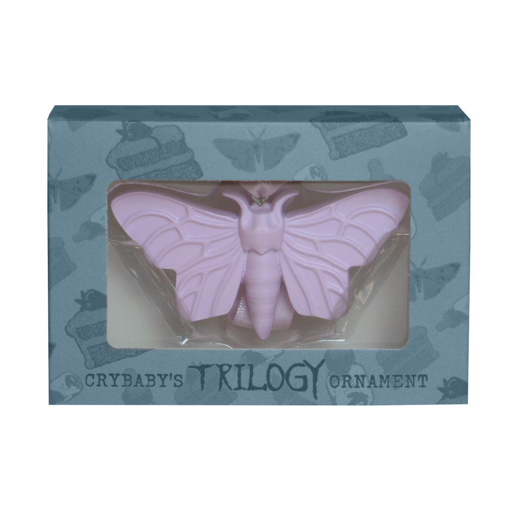 Limited reissue of the Portals Moth Ornament, a delicate resinmade decoration inspired by Melanie Martinez's, Portals era. This charming pink moth ornament is adorned with a branded pink ribbon, perfect for hanging making it a memorable keepsake. Product is 3" x 1.5"
