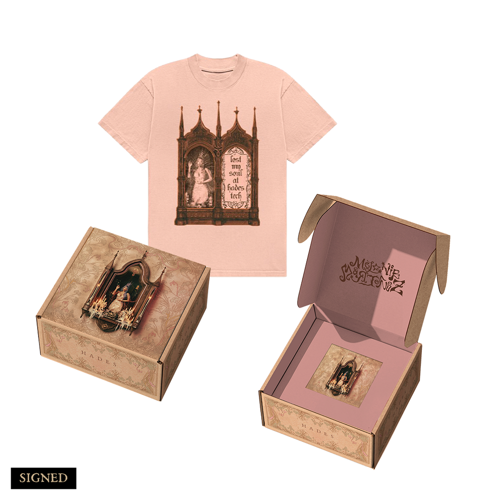 HADES, the fourth studio album from Melanie Martinez. The Altar Box Set includes a signed artcard, CD, and t-shirt.