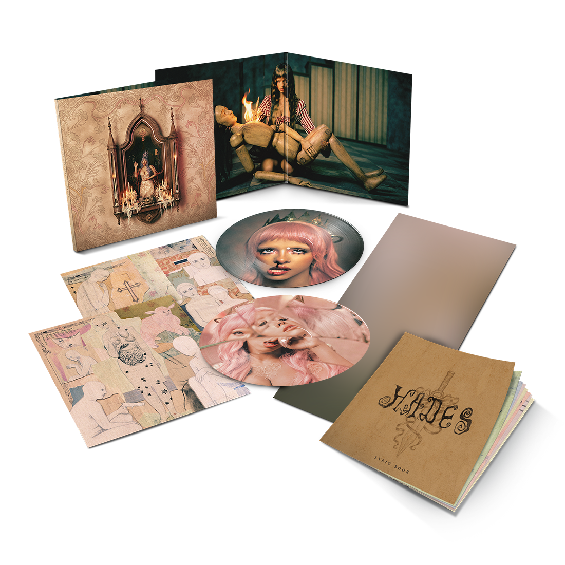 HADES, the fourth studio album from Melanie Martinez, on Spotify Fans First Picture Disc. The 2LP, gatefold jacket includes a 20pg booklet and randomized 12x24 poster insert (1 of 3 prints).